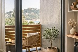 - 21-25 qm, Studio, Meerblick (seitlich), Nichtraucher, Bettwäsche, Handtücher und Matratzen aus 100% Bio-Baumwolle, Twinbett, Sofabett, Dusche, WC, Badeslipper, Haartrockner, Fliesen, Klimaanlage, Safe, 1 TV (Sat-TV), Wasserkocher, Kühlschrank, Balkon