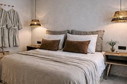 - 31-35 qm, Suite, Landblick, Nichtraucher, Bettwäsche, Handtücher und Matratzen aus 100% Bio-Baumwolle, separater Wohnraum, Twinbett, Sofabett, Dusche, WC, Badeslipper, Haartrockner, Fliesen, Klimaanlage, Safe, 2 TVs (Sat-TV), Kochnische, Wasserkocher, Kühlschrank, Balkon