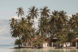 Ca. 220 m x 230 m große, fast kreisrunde Insel mit puderzuckerfeinem Sandstrand und tropischer Vegetation