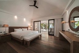 - 31-35 qm, Bungalow, Strandlage, Meerblick, nach oben halb offenes Bad, Außendusche, WC, Bademantel, Haartrockner, Holzboden, Klimaanlage, Ventilator, Minibar, Safe, Wasserkocher, Kaffee/Tee, Terrasse (möbliert)